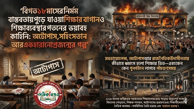 ২০২৪ সালের আগস্ট থেকে পরবর্তী আঠারো মাস বাংলার শিক্ষাব্যবস্থার ইতিহাসে এক অভিশপ্ত অধ্যায় হয়ে থাকবে। সেই অধ্যায়ের পাতায় লেখা আছে—বিদ্যালয় পুড়েছে, গ্রন্থাগার ভস্মীভূত হয়েছে, শিক্ষকরা পথে নেমেছেন, ছাত্ররা অটোপাসের মাদকে বিভোর, মব ভায়োলেন্সের জ্বালায় পুড়েছে সম্পর্কের বাঁধন, আর নৈতিকতার যে চরম অবনমন ঘটানো হয়েছে, তা যেন এক বিষবৃক্ষ—যার ফল খেয়ে বাঘও নপুংসকের স্বাদে আসক্ত।