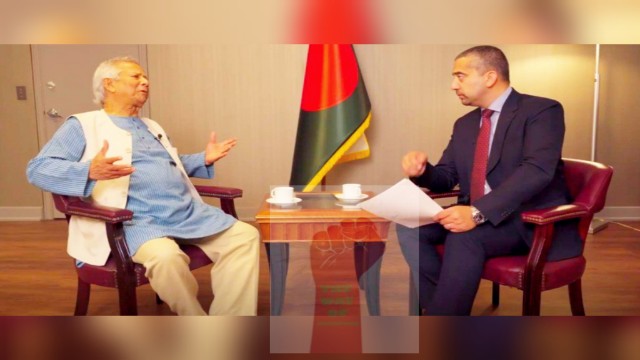 জাতিসংঘের সাধারণ পরিষদের ৮০তম অধিবেশনে যোগ দিতে নিউইয়র্ক সফরে আছেন বাংলাদেশের অন্তর্বর্তী সরকারের প্রধান উপদেষ্টা অধ্যাপক মুহাম্মদ ইউনূস। সফরের ফাঁকে তিনি ডিজিটাল সংবাদমাধ্যম জিটিও’র সাংবাদিক মেহদি হাসানকে সাক্ষাৎকার দেন। সেখানে জুলাইয়ের গণ–অভ্যুত্থান, আওয়ামী লীগ সরকারের পতন, শেখ হাসিনার দেশত্যাগ, ভারতের আশ্রয়, আওয়ামী লীগের কার্যক্রম স্থগিতাদেশ, নির্বাচনসহ নানা বিষয়ে খোলামেলা মতামত দেন তিনি।
