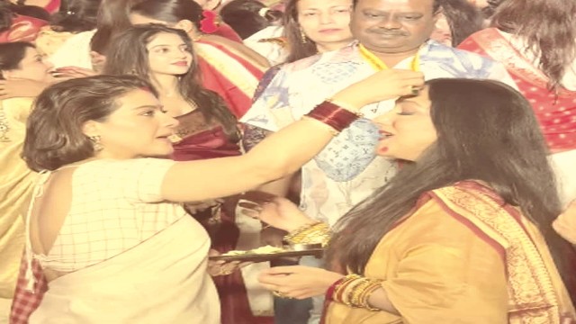 10/02/2025 ঋতুপর্ণা সেনগুপ্তের সঙ্গে মুম্বাইয়ে সিঁদুর খেলা উদযাপন করলেন কাজল