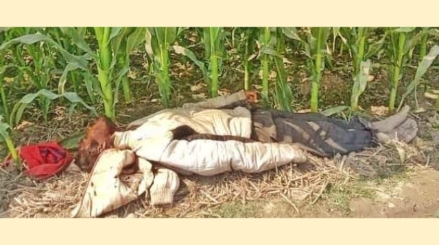 নীলফামারী প্রতিনিধিঃ নীলফামারী জেলার ডোমার উপজেলায় ভূট্টা ক্ষেত থেকে অজ্ঞাত ব্যক্তির গলাকাঁটা লাশ উদ্ধার করেছে ডোমার থানা পুলিশ। শুক্রবার (১৭ ফেব্রুয়ারি) সকালে উপজেলার ৭ নং বোড়াগাড়ী ইউনিয়নের নিমোজখানা (নন্দিপাড়া)গ্রামে এমন ঘটনার অবতারণ ঘটেছে। এলাকাবাসী ও ডোমার থানা পুলিশ সুত্রে জানা গেছে, গ্রামের কৃষক দয়াল চন্দ্র তার ধান ক্ষেতে পানি দিতে গেলে পাশে ভূট্টা ক্ষেতে অজ্ঞাত এক ব্যক্তির গলাকাটা মরদেহ দেখতে পায়। ঘটনাটি তিনি ডোমার থানায় জানালে, থানা ভারপ্রাপ্ত কর্মকর্তা মাহমুদ উন-নবী ও বোড়াগাড়ী ইউপি চেয়ারম্যান আমিনুল ইসলাম রিমুন ঘটনাস্থল পরিদর্শন করেন। এদিকে জেলা থেকে সিআইডি ও ডিবি পুলিশের একটি চৌকস দল এলাকায় তদন্ত কাজ শুরু করছে মর্মে জানা গেছে। ডোমার থানার ওসি মাহমুদ উন-নবী জানান, জেলা পুলিশের সহকারী পুলিশ সুপার মহোদয় আসার পরে লাশের সুরতাহাল শেষে ময়না তদন্তের জন্য জেলা মর্গে পাঠানো হবে। তিনি আরও বলেন, লাশের পরিচয় এখনো সনাক্ত করা সম্ভব হয়নি তদন্ত চলছে।