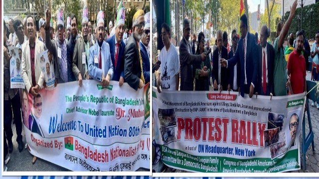 রিয়াজ রহমান গ্রেফতার আওয়ামী লীগ বিএনপি পাল্টাপাল্টি সমাবেশ। প্রবাসী বাংলাদেশি রাজনীতি মুহাম্মদ ইউনূস ভাষণ প্রতিবাদ নিউইয়র্ক আওয়ামী লীগ বিএনপি সমাবেশ জাতিসংঘের সামনে সংঘর্ষ ২০২৫