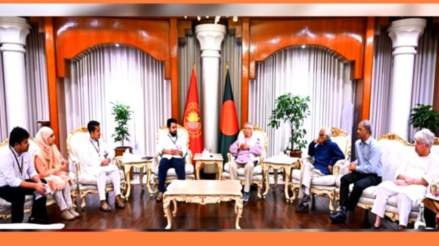 নাহিদ ইসলামের নেতৃত্বে এনসিপির প্রতিনিধিদল আজ সন্ধ্যায় রাষ্ট্রীয় অতিথিশালা যমুনায় প্রধান উপদেষ্টা ড. মুহাম্মদ ইউনূসের সঙ্গে বৈঠক করে। ছবি: পিআইডি