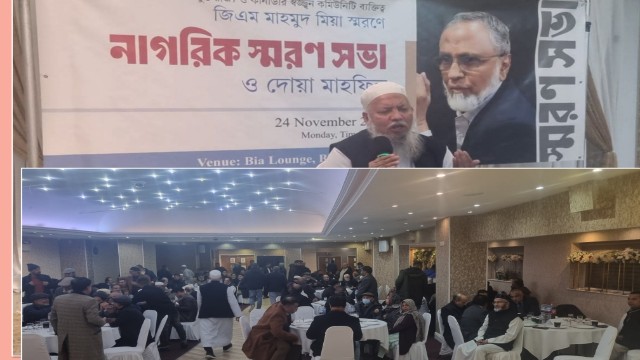 যুক্তরাজ্যের বার্মিংহামে প্রবাসী বাংলাদেশি কমিউনিটির নন্দিত ব্যক্তিত্ব, সমাজসেবক ও প্রবীণ রাজনৈতিক নেতা প্রয়াত আলহাজ্ব গোলাম মোহাম্মদ (জি এম) মাহমুদ মিয়া–কে স্মরণে আয়োজিত নাগরিক স্মরণসভা ও দোয়া মাহফিল হয়ে উঠেছে এক হৃদয়ভরা আবেগের আয়োজন। ২৬ নভেম্বর বার্মিংহামের স্থানীয় কমিউনিটি, ব্যবসায়ী, সাংবাদিক ও বিভিন্ন সংগঠনের সমন্বয়ে গঠিত নাগরিক কমিটির উদ্যোগে এ স্মরণসভা অনুষ্ঠিত হয়।