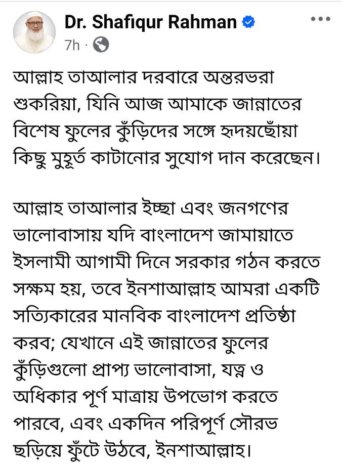 এই ঘটনাকে কেন্দ্র করে ড. শফিকুর রহমান তার ফেসবুক পোস্টে তীব্র ক্ষোভ প্রকাশ করে লেখেন—