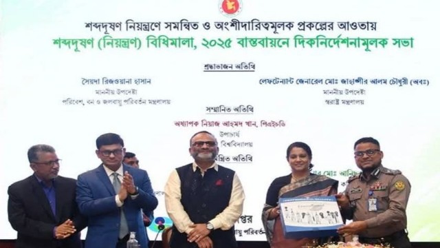 রোববার (১৪ ডিসেম্বর ২০২৫) পরিবেশ অধিদপ্তরের সম্মেলন কক্ষে আয়োজিত এক অনুষ্ঠানে পরিবেশ, বন ও জলবায়ু পরিবর্তন মন্ত্রণালয়ের উপদেষ্টা সৈয়দা রিজওয়ানা হাসান ঢাকা বিশ্ববিদ্যালয়ের উপাচার্য অধ্যাপক ড. নিয়াজ আহমদ খানের হাতে সম্মাননা ও ক্রেস্ট তুলে দেন।