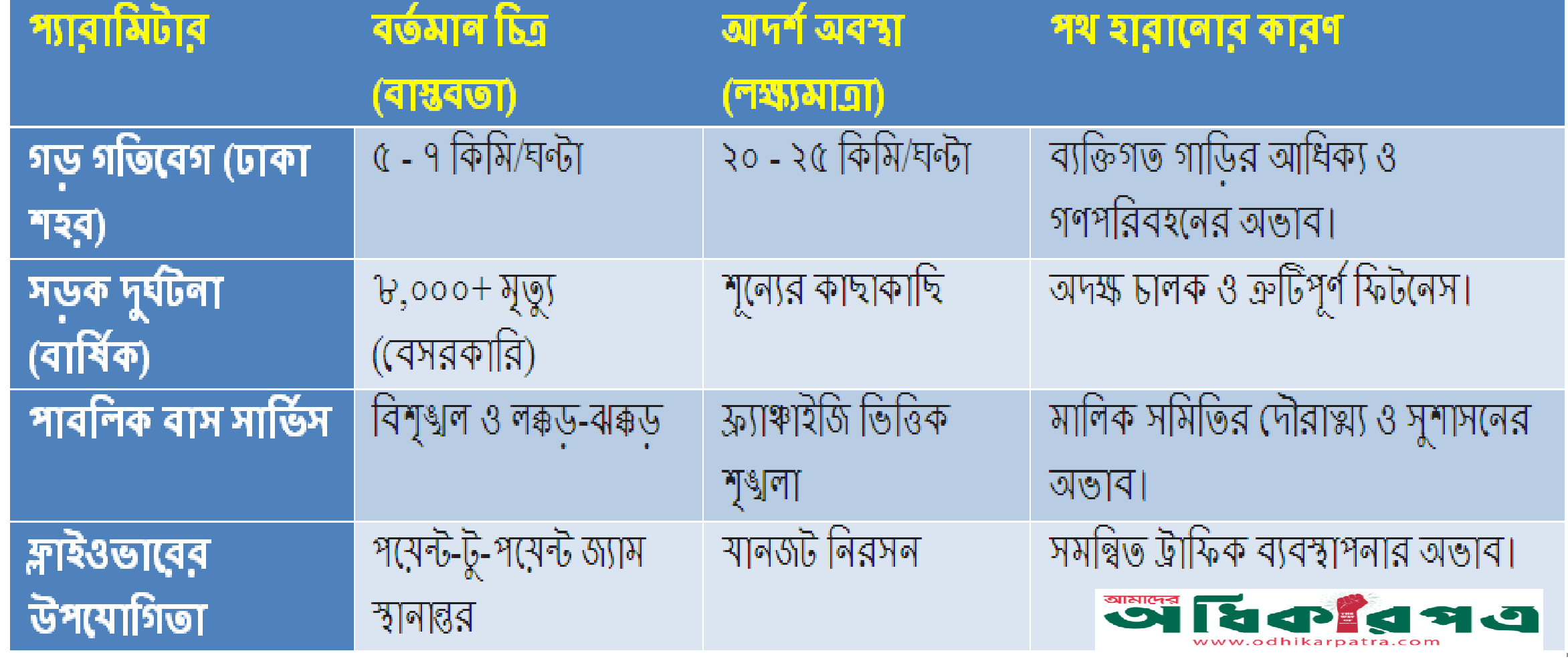 কেন আমাদের পথিকরা প্রতিদিন রাস্তায় 'বলি' হচ্ছে? নিচের টেবিলটি আমাদের অবকাঠামোর প্রকৃত হালহকিকত তুলে ধরে: