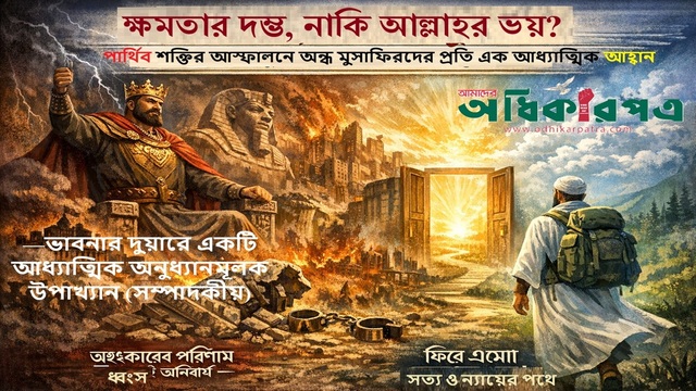 ক্ষমতা স্থায়ী নয়, দম্ভ অন্ধত্ব ডেকে আনে, আর অন্যায়ের পতন এক শ্বাশত নিয়ম। তাই হে মুসাফির, সজাগ হও, ফিরে এসো ন্যায়ের পথে, কেননা সেই পথই চিরস্থায়ী মুক্তির একমাত্র সোপান। আল্লাহ রাব্বুল আলামীন আমাদের কবুল করুন, আমাদের অন্তরগুলোকে হেদায়াতের উপর প্রতিষ্ঠিত রাখুন, এবং যেন আমরা তাঁর প্রিয় বান্দা হয়ে এই পথচলা সম্পন্ন করতে পারি।