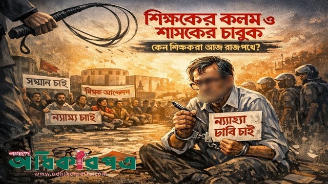 ইতিহাসের প্রতিটি বাঁকে দেখা গেছে, সভ্যতার মশাল যারা বহন করেন, সেই শিক্ষকদের কলমই ছিল সমাজ পরিবর্তনের প্রধান শক্তি। প্রাচীন গ্রিসের সক্রেটিস থেকে শুরু করে ভারতীয় উপমহাদেশের চাণক্য—শিক্ষকের কলম ও বাণী সবসময় শাসকের অন্যায়ের বিরুদ্ধে এক অদৃশ্য দেওয়াল হয়ে দাঁড়িয়েছে। কিন্তু একবিংশ শতাব্দীর বাংলাদেশে এসে আমরা এক করুণ বৈপরীত্য প্রত্যক্ষ করছি। যে হাতটি হওয়ার কথা ছিল সর্বোচ্চ সম্মানিত, সেই হাতে আজ আমরা হাতকড়া পরাচ্ছি; যে পিঠটি হওয়ার কথা ছিল সোজা, সেখানে পড়ছে শাসকের চাবুক। আজ শিক্ষকরা শ্রেণিকক্ষে নেই, তারা রাজপথে। তাদের হাতে চক বা কলম নেই, আছে দাবি আদায়ের ব্যানার। এই দৃশ্যটি কেবল একদল মানুষের পেশাগত আন্দোলনের নয়, এটি একটি রাষ্ট্রের নৈতিক পতনের চূড়ান্ত দলিল। কেন জ্ঞানতাপসদের আজ শাসকের চাবুকের ভয়ে বা অধিকারের দাবিতে রাজপথে নামতে হচ্ছে, সেই কার্যকারণ অনুসন্ধান আজ সময়ের দাবি।