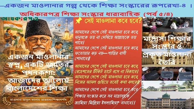 মাওলানা আবুল কালাম আজাদের বৈপ্লবিক শিক্ষা দর্শন কীভাবে আধুনিক বাংলাদেশের শিক্ষা সংস্কারের প্রধান প্রেরণা হতে পারে—বিজ্ঞান, প্রযুক্তি ও সংস্কৃতির সমন্বয়ে মানবিক, ন্যায়ভিত্তিক ও উৎপাদনশীল জাতি গঠনের এক বিশদ বিশ্লেষণ, এবং বাংলাদেশের আলেম সমাজের জন্য একটি আত্মসমালোচনামূলক আহ্বান।