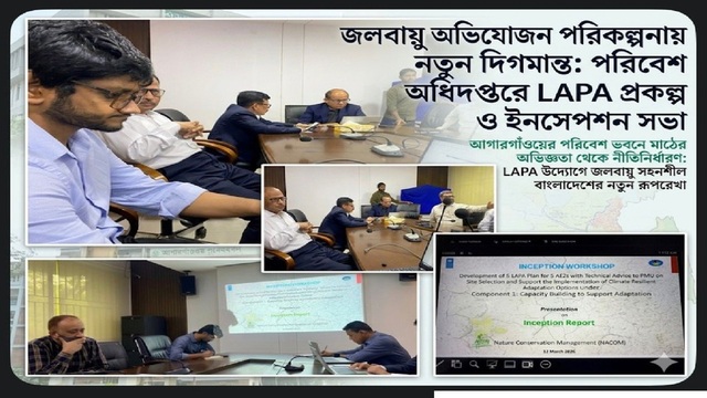 বাংলাদেশে জলবায়ু পরিবর্তনের বিরুদ্ধে লড়াইয়ে নতুন অধ্যায়—স্থানীয় মানুষের অভিজ্ঞতা নিয়ে LAPA পরিকল্পনা। নদীভাঙন, খরা আর লবণাক্ততার বিরুদ্ধে লড়াইয়ে এখন মাঠের মানুষের কণ্ঠস্বরই সবচেয়ে শক্তিশালী অস্ত্র। গ্রামবাংলার অভিজ্ঞতা থেকে নীতিনির্ধারণে—পরিবেশ অধিদপ্তরে LAPA প্রকল্পের ইনসেপশন সভা জলবায়ু অভিযোজনের নতুন দিগন্ত উন্মোচন করেছে। কৃষি, পরিবেশ ও টেকসই উন্নয়নে নতুন দিগন্তের সম্ভাবনা তৈরি হয়েছে।