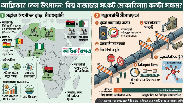 ইরান ও ইসরায়েলের মধ্যে চলমান সংঘাত এবং হরমুজ প্রণালী বন্ধ হওয়ার উপক্রম হওয়ায় বিশ্বজুড়ে জ্বালানি সরবরাহে বড় ধরনের অস্থিরতা তৈরি হয়েছে। বিশ্বের মোট তেল পরিবহনের প্রায় এক-পঞ্চমাংশ এই রুট দিয়ে সম্পন্ন হয়। এই সংকটে ক্রেতা দেশগুলো এখন বিকল্প উৎসের সন্ধানে আফ্রিকার দিকে নজর দিচ্ছে। তবে প্রশ্ন উঠেছে নাইজেরিয়া বা অ্যাঙ্গোলার মতো দেশগুলো কি স্বল্পমেয়াদে উৎপাদন বাড়িয়ে এই ঘাটতি মেটাতে সক্ষম?