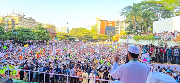 জামায়াতের আমির শফিকুর রহমান বলেন, ‘অপকর্মের’ দায় নিয়ে ফ্যাসিস্টরা বাংলাদেশ থেকে পালালেও ফ্যাসিজমের কালো ছায়া যায়নি। তিনি হুঁশিয়ারি দেন, ‘কেউ যদি চিন্তা করেন জনগণের সমর্থন পাব না, তাহলে বাঁকা পথে প্রশাসনিক ক্যু-এর মাধ্যমে আমরা নির্বাচনের ক্রেডিট হাইজ্যাক করব, তাঁদের বলব, বন্ধু সেই সূর্য ডুবে গেছে, এই সূর্য আর বাংলাদেশে উঠবে না। এখন নতুন সূর্যের উদয় হবে, সেই সূর্য কোরআন বুকে নিয়ে উদিত হবে ইনশা আল্লাহ। বাংলাদেশ থেকে অপশাসন দূর হবে।’