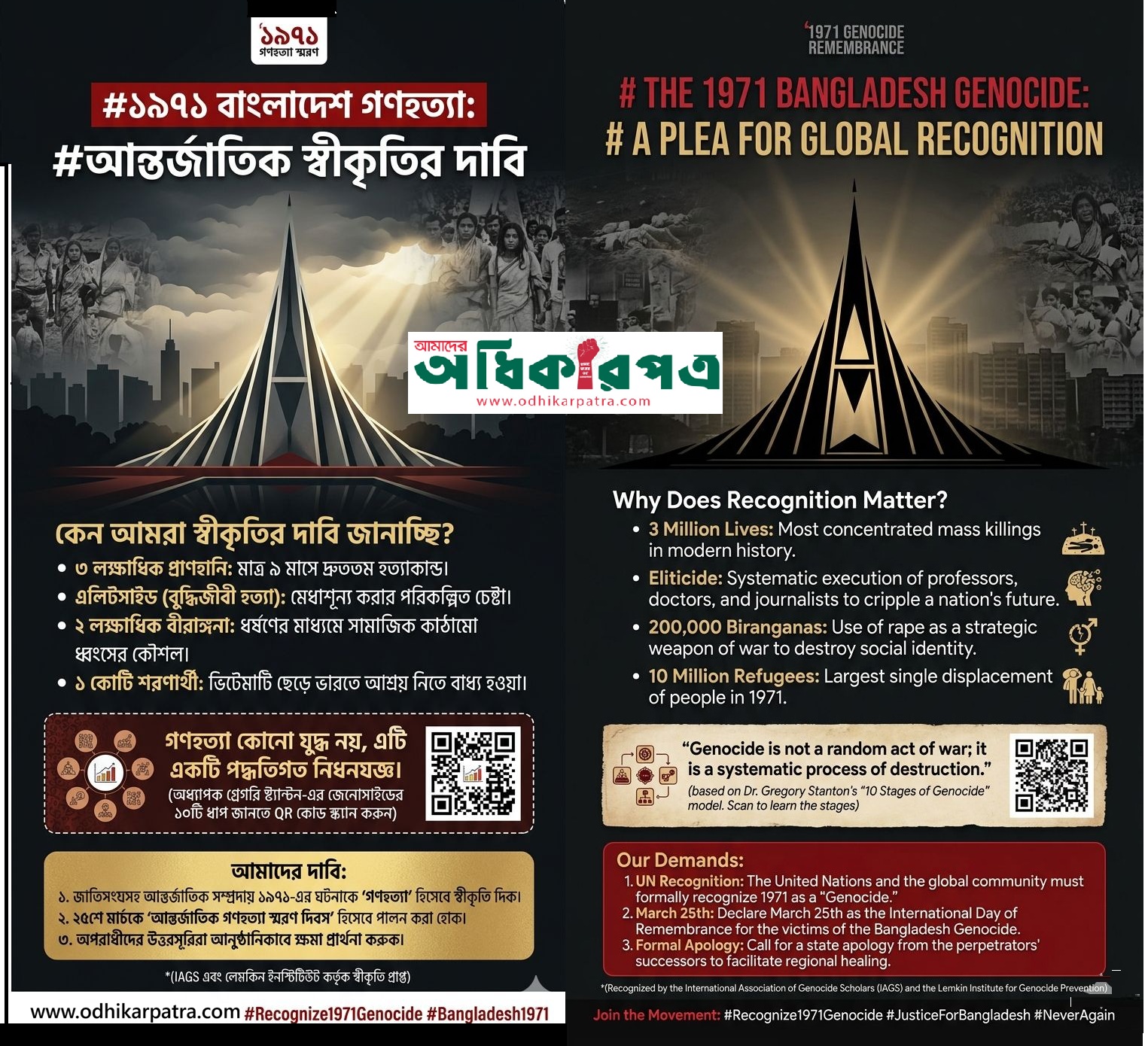 #১৯৭১গণহত্যা #BangladeshGenocide #March25 #OperationSearchlight #NeverForget1971 #JusticeForGenocide #Recognize1971 #GenocideAwareness #StopDenial #HumanityFirst #HistorySpeaks #GlobalJustice #VoiceOf1971 #EndImpunity #TruthAndJustice