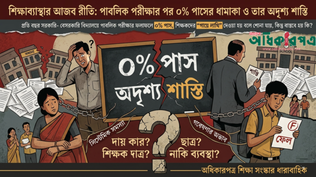 প্রতি বছর সরকারি-বেসরকারি বিদ্যালয়ে পাবলিক পরীক্ষার ফলাফলে ০% পাসের ঘটনা সামনে এলে, শিক্ষকদের “গায়ে লাথি” দেওয়া হয়, যদিও প্রকৃত দোষীদের শাস্তি থাকে কাগজে—তাই বাস্তবে এই ঘটনা বদলায় না— সংখ্যা বলে ব্যর্থতা, কিন্তু দায় নেয় কে?